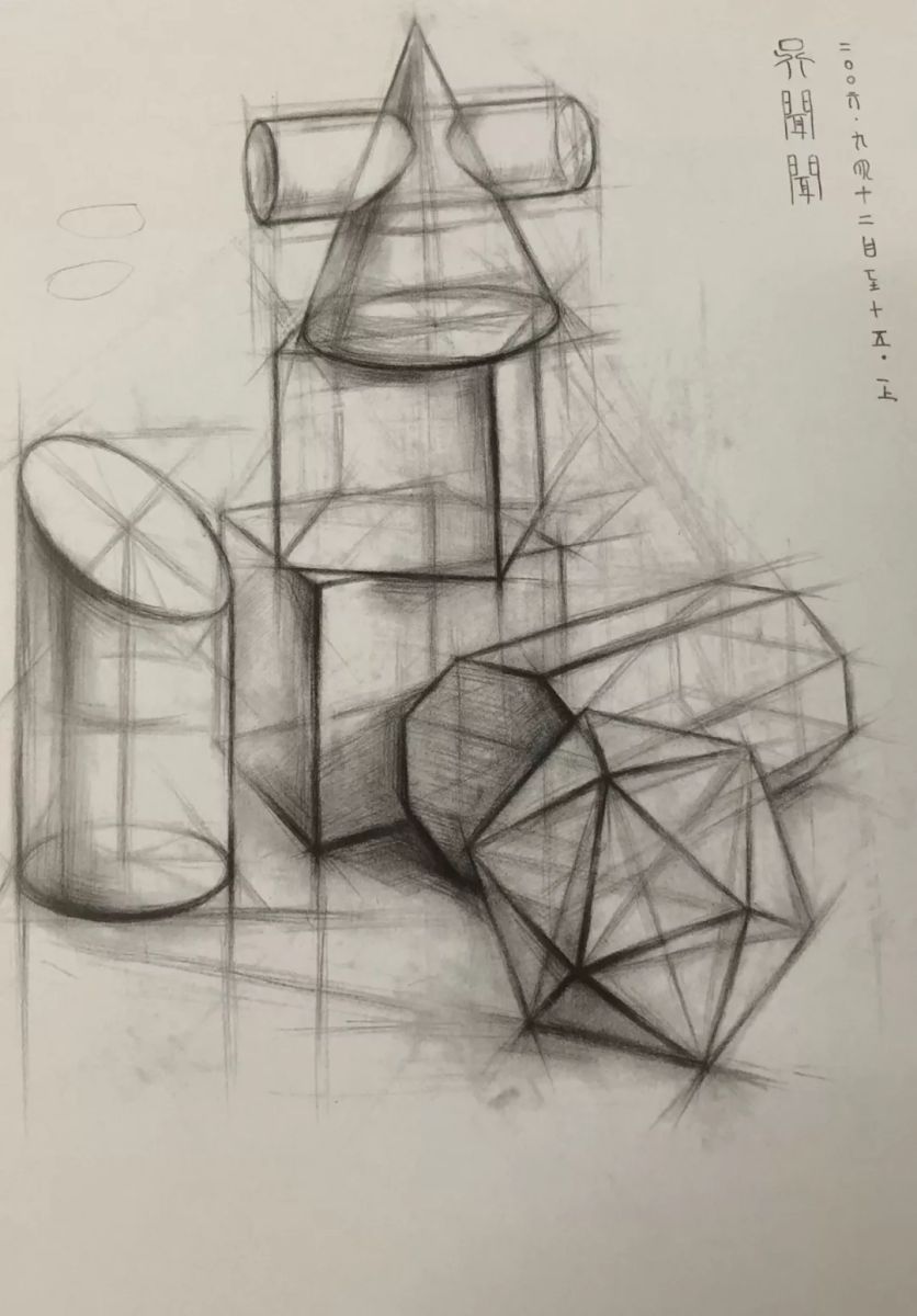 几何体结构素描 吴闻闻 纸本炭笔 59cm X 45cm 2006年