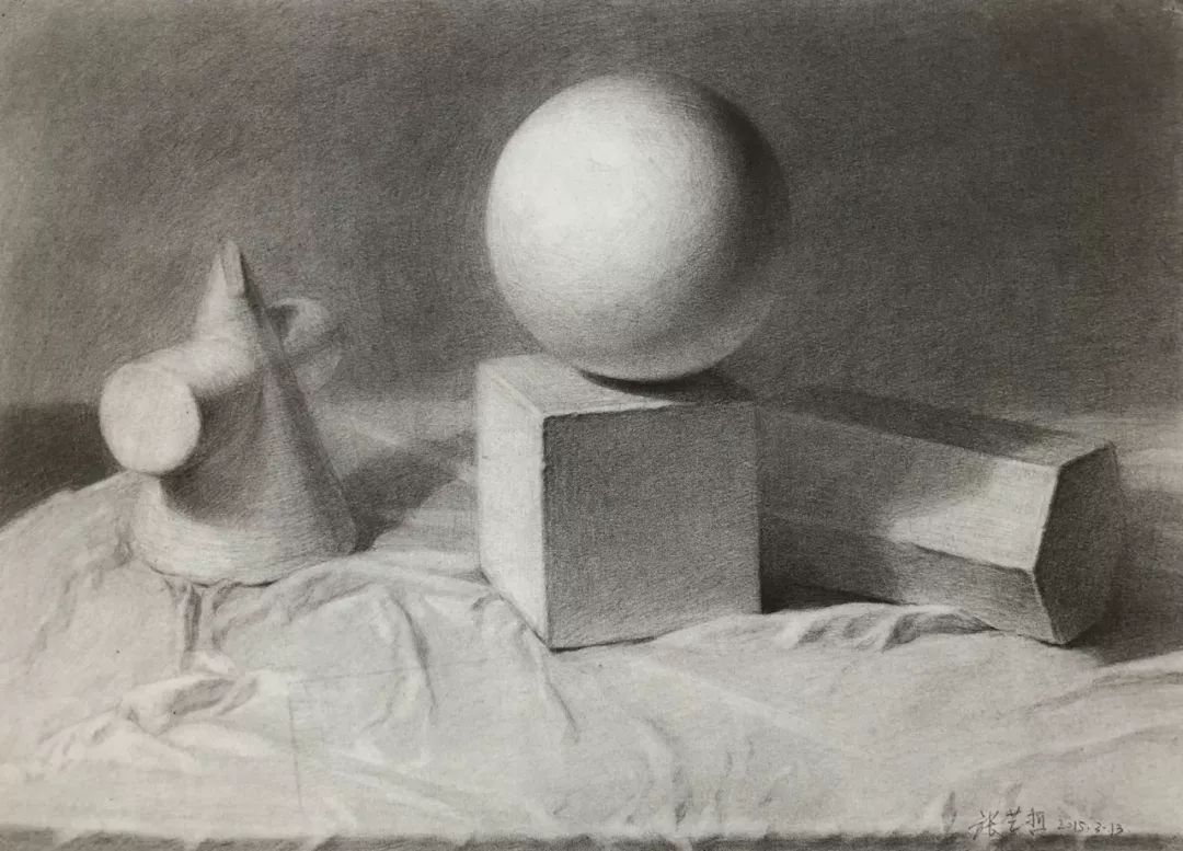 石膏几何体 张艺哲 纸本铅笔 38cm X52cm 2014年