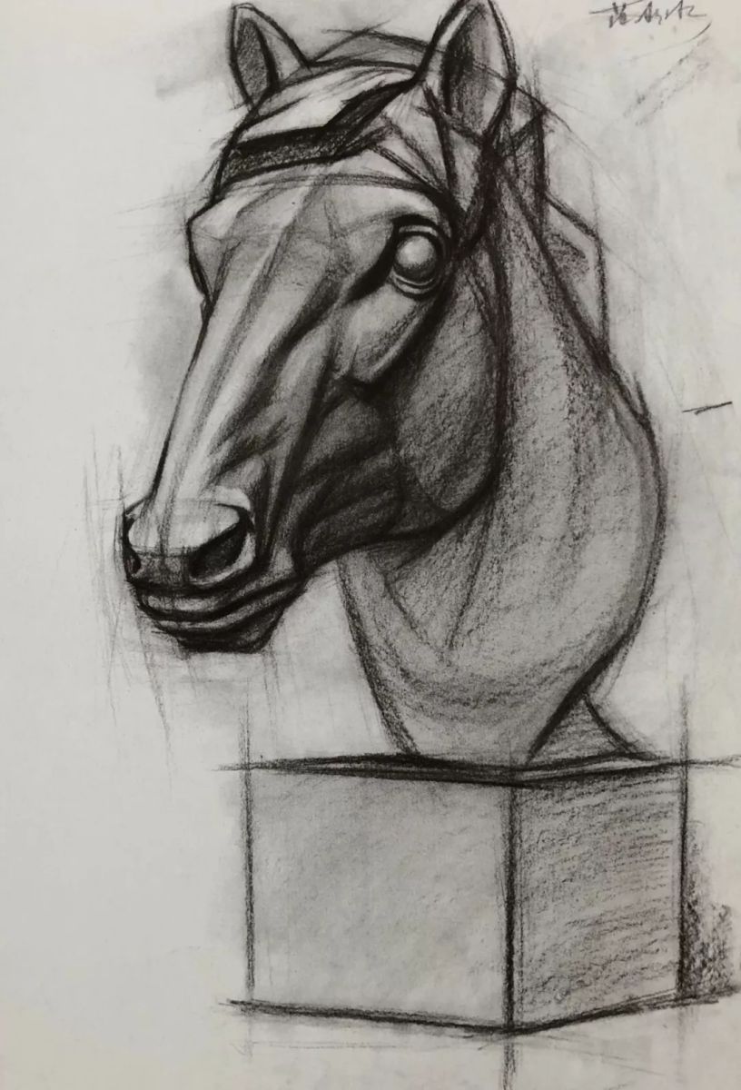 马头石膏像 范冰冰 纸本碳笔 52cm X38cm 2017年