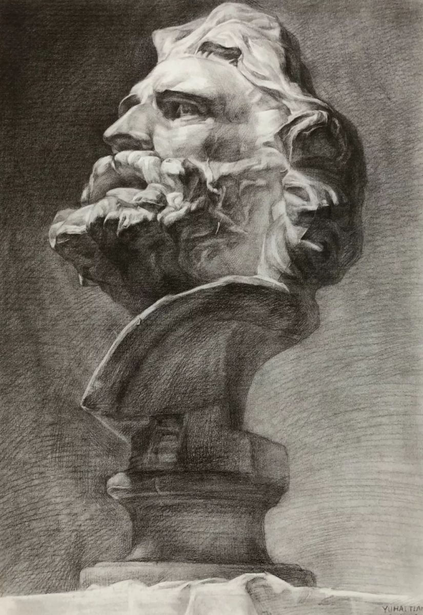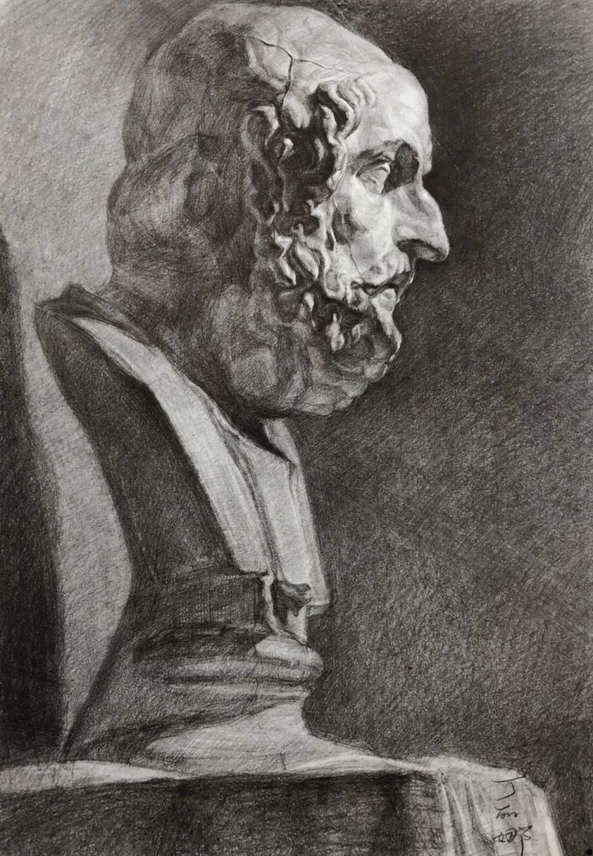 马赛石膏头像 俞海天 纸本铅笔 52cm X38cm 2018年