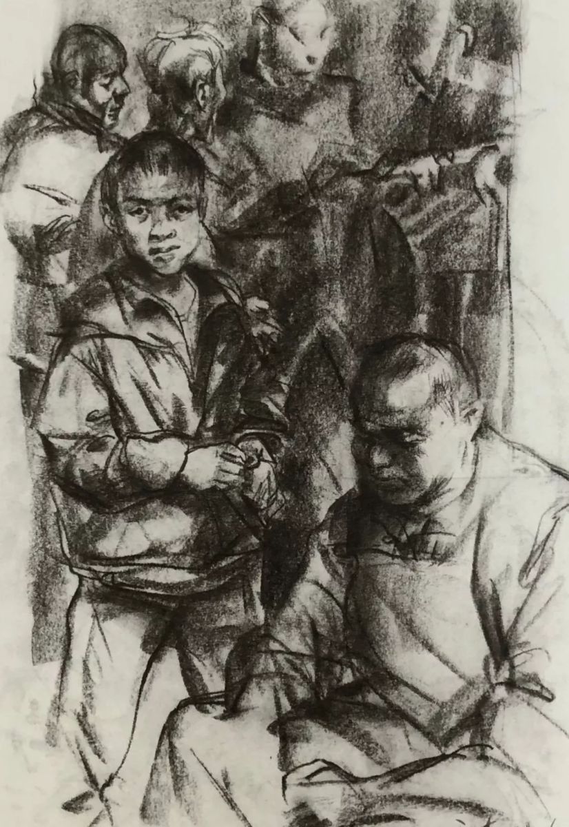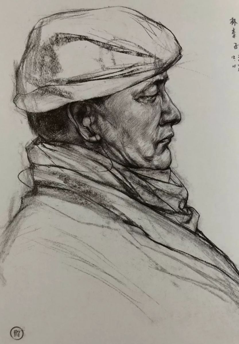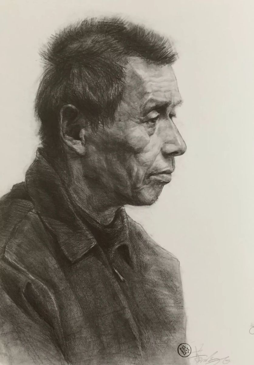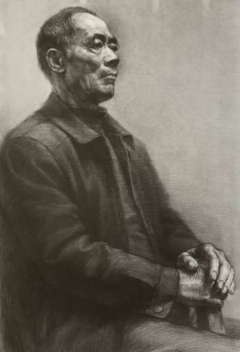 退休工人 陈政 纸本炭笔 35cm×25cm 1998年