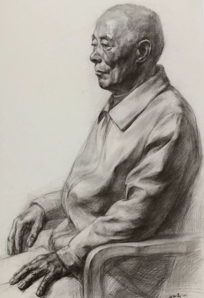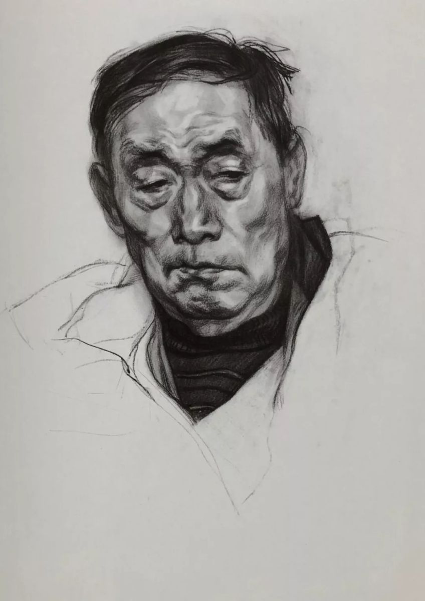 老人半身像 张雨潇 纸本炭笔 78cm×54cm 2015年