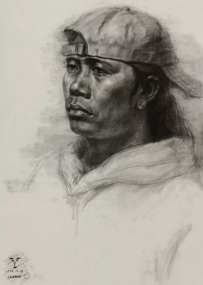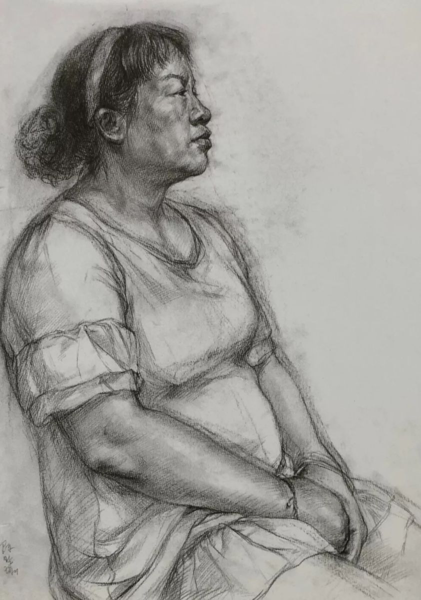 女子半身像 陈晓瑜 纸本炭笔 52cm×38cm 2016年