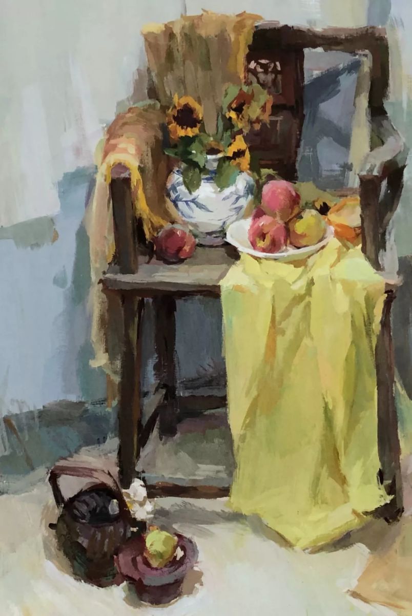 仰视下的果与瓶 虞萧乐 纸本水粉 46cm×34cm 2018年