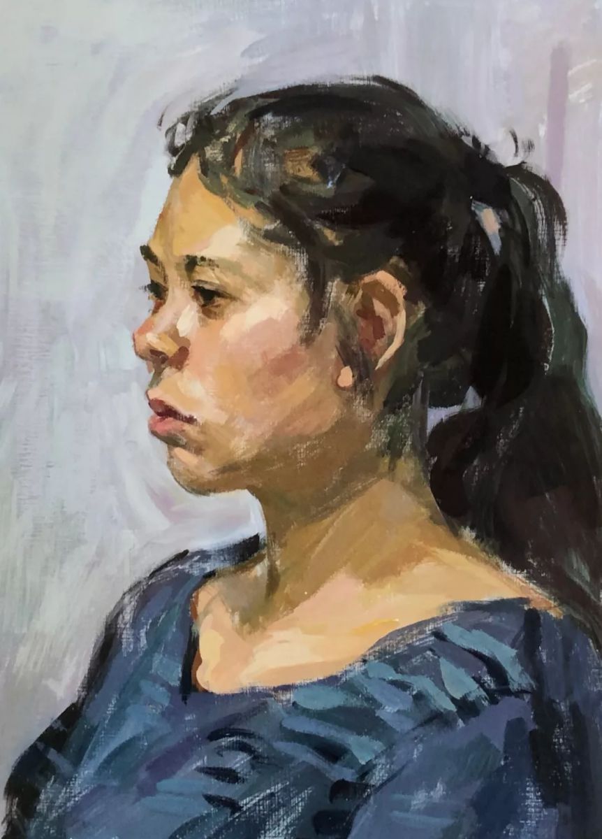 女青年头像 孙堰文 纸本水粉 50cm×35cm 2014年