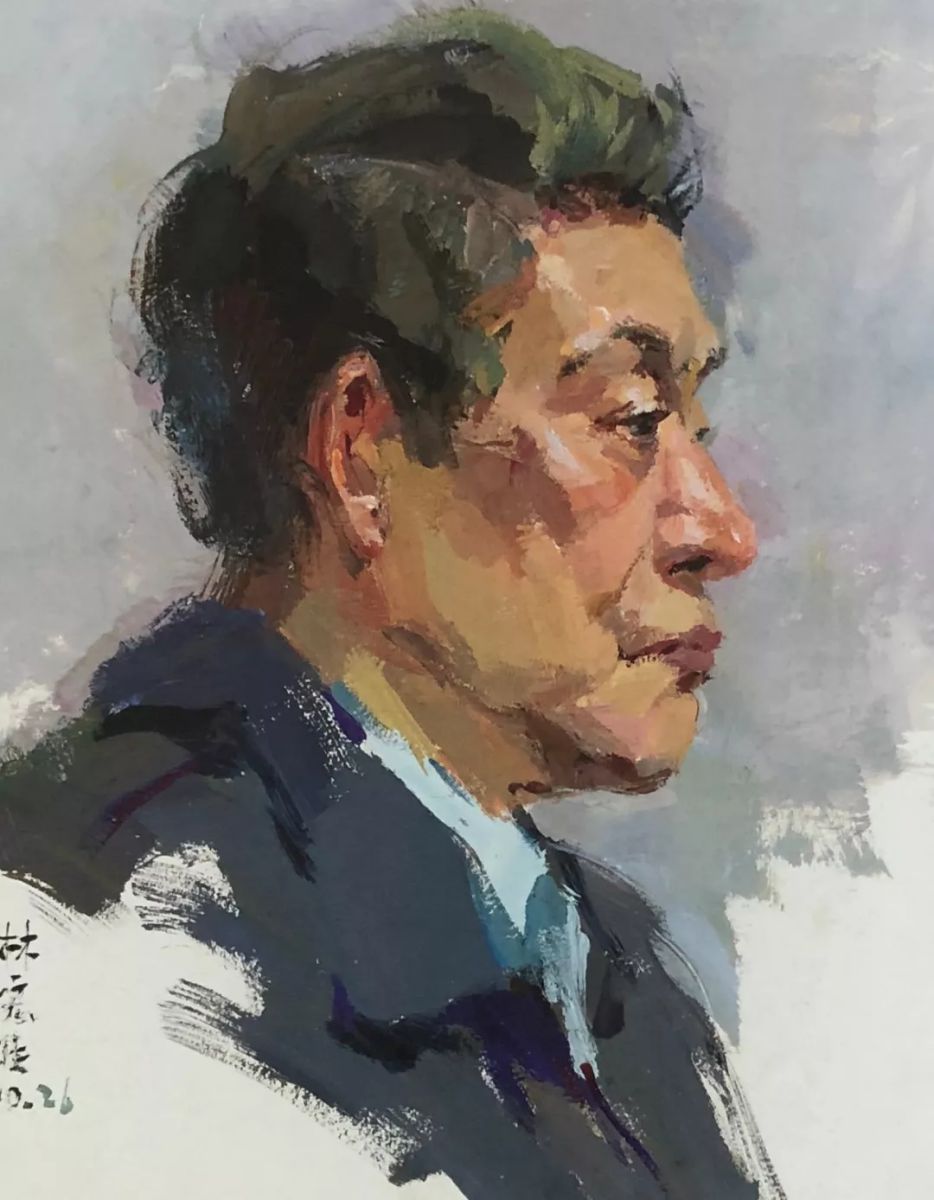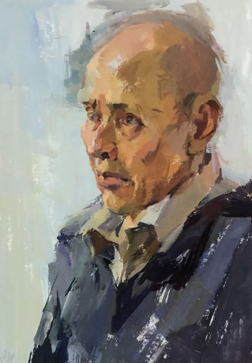 老人头像 计君然 纸本水粉 50cm×35cm 2014年