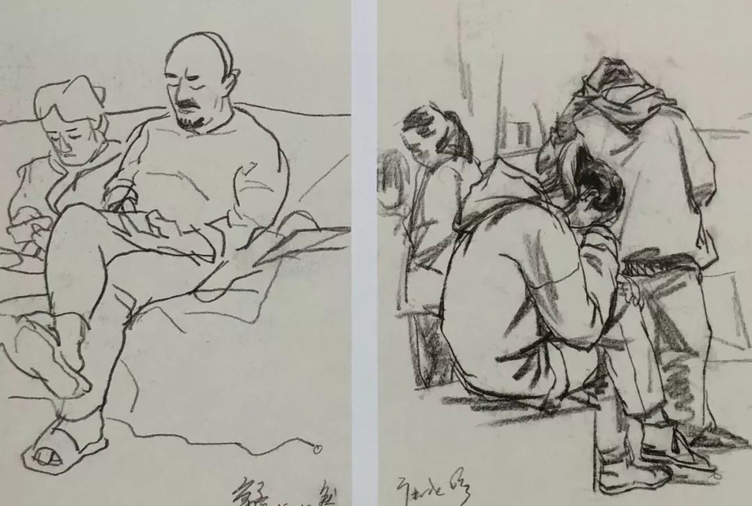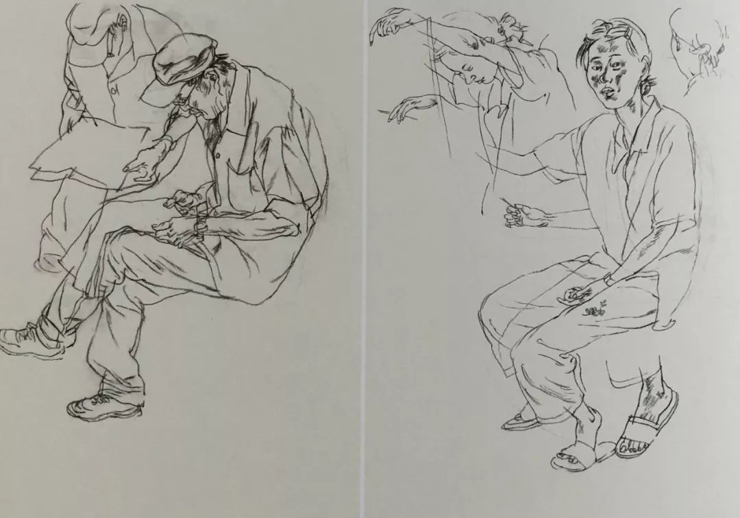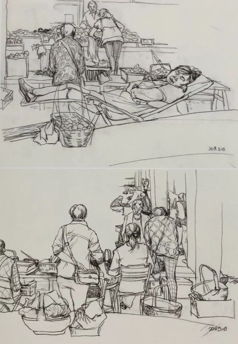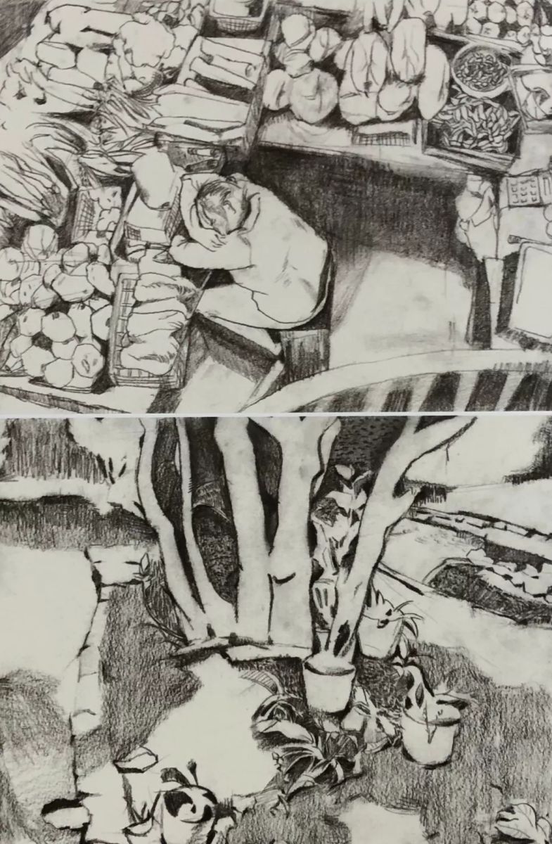 歙县菜场 夏逸纯 纸本炭笔 19cm×27cm×2 2019年