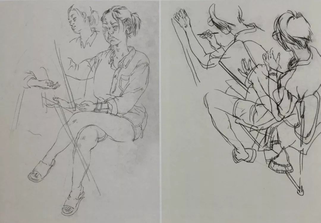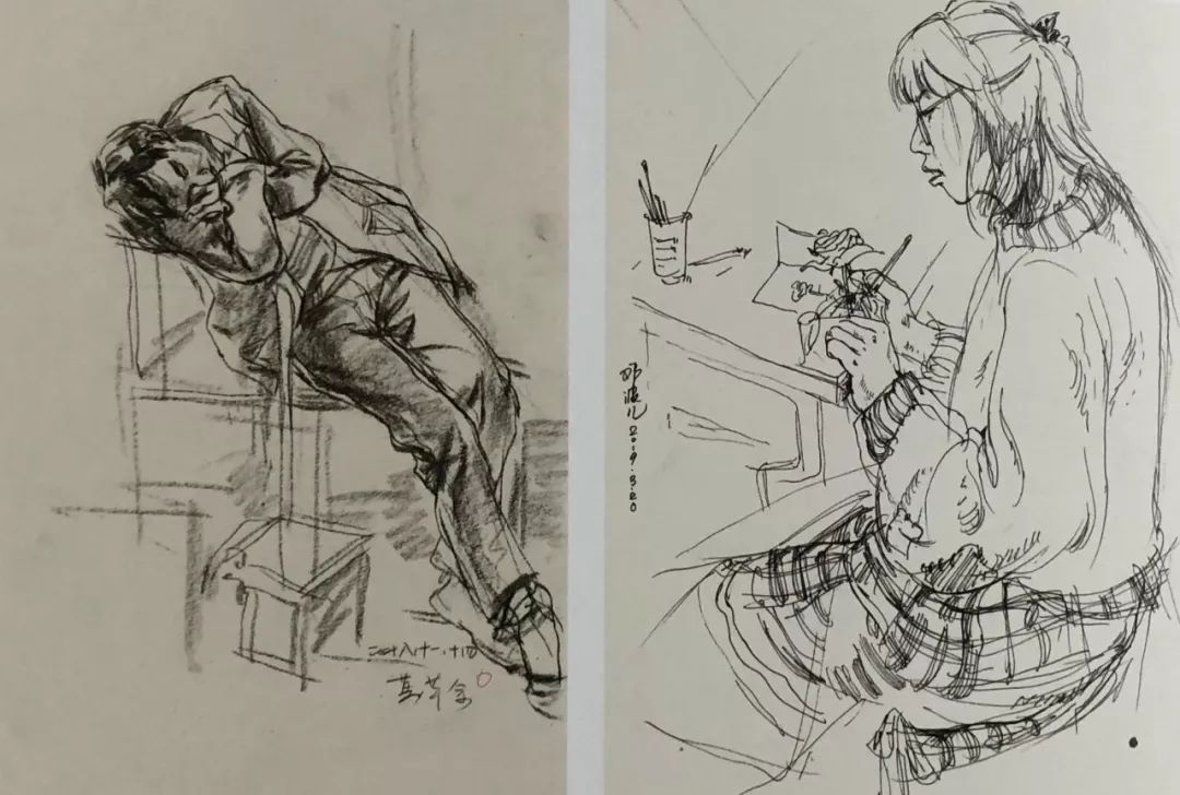 课间 陈美璇 纸本炭笔 35cm×25cm×2 2019年