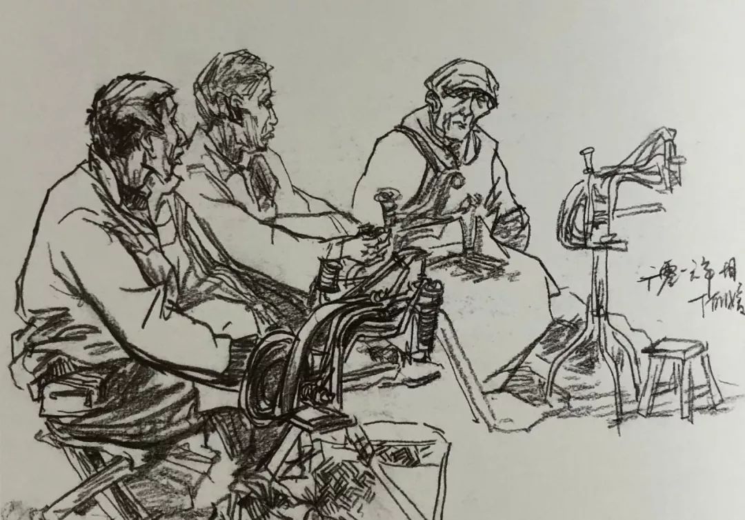 补鞋匠 丁丽媛 纸本炭笔 19cm×29cm 2016年