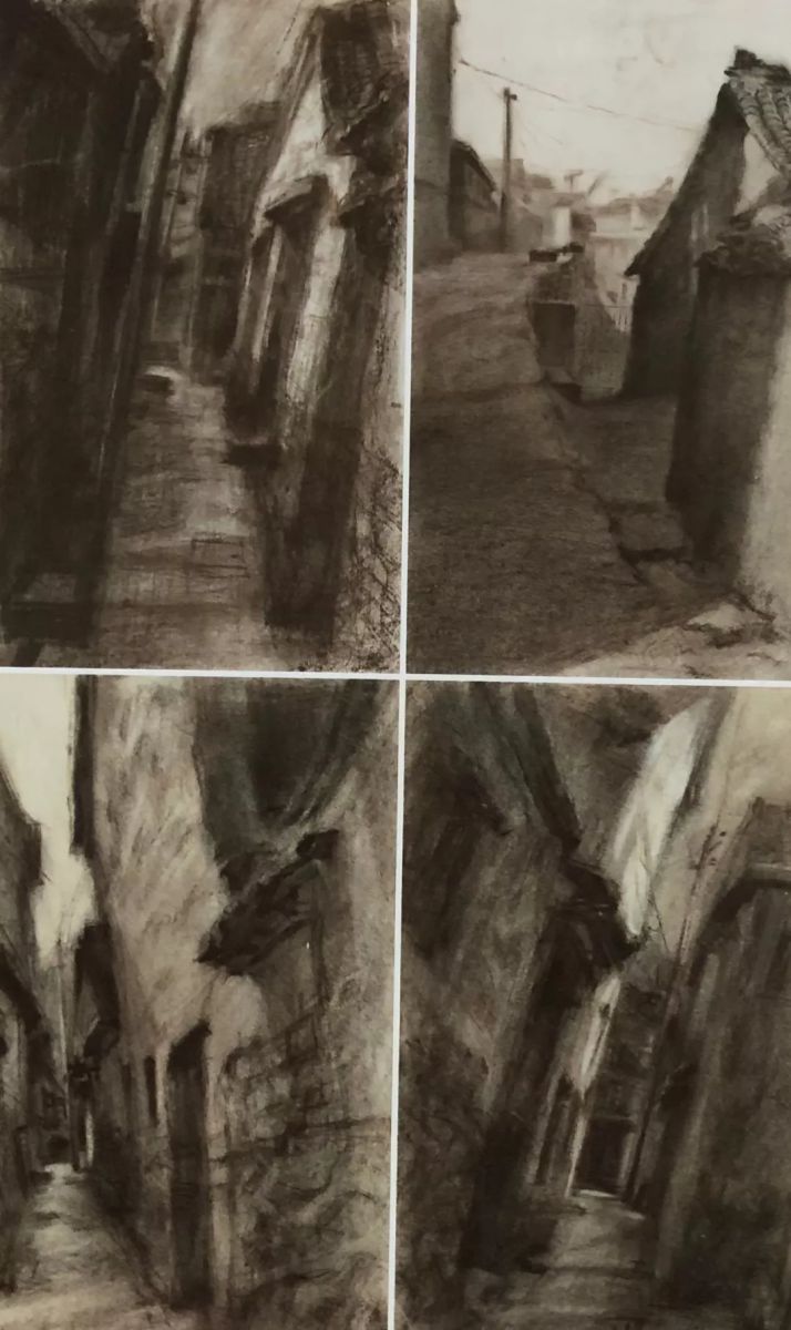 歙县小巷 季湘志 纸本炭笔 38cm×23cm×4 2007年