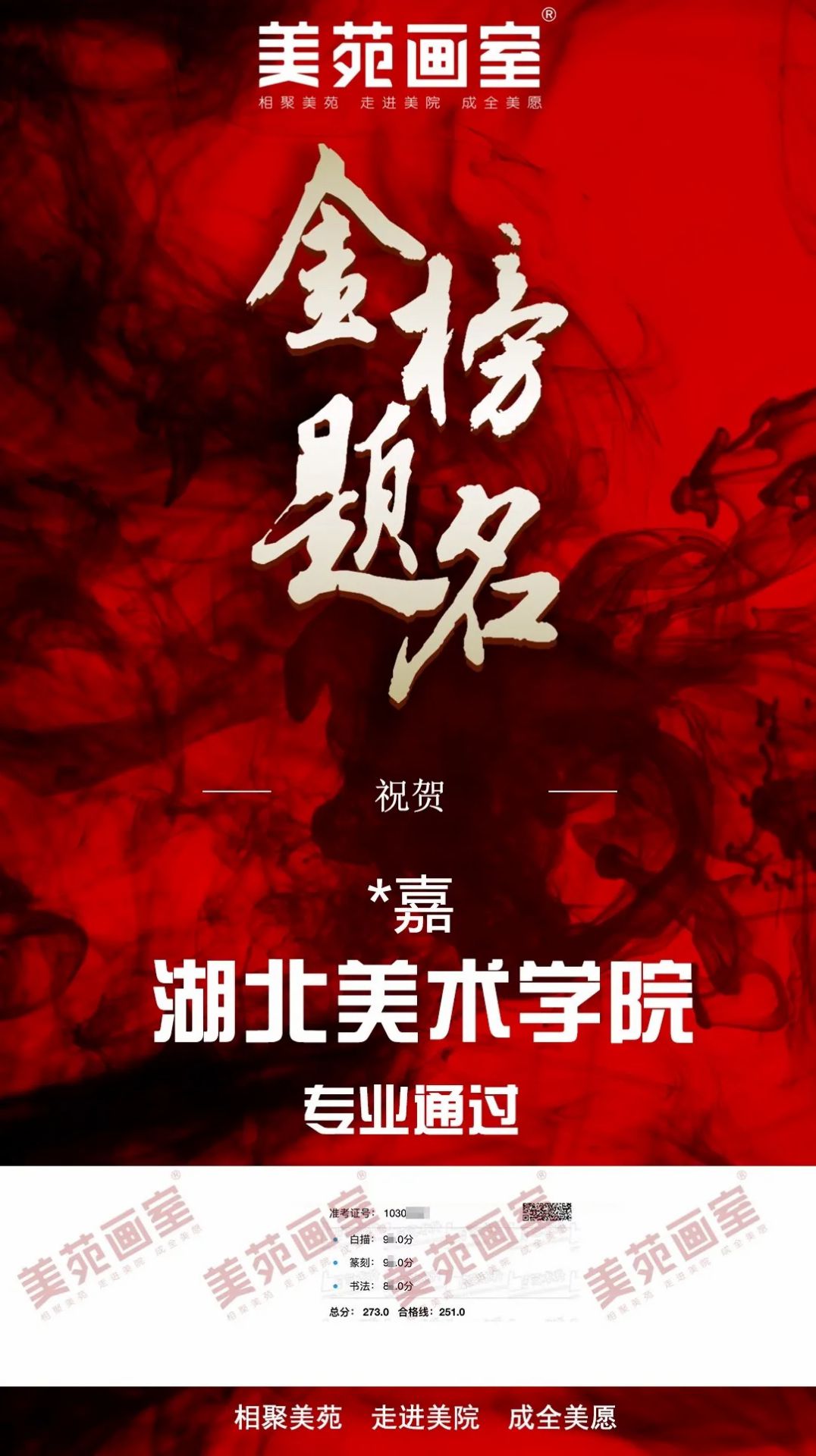 时间如白驹过隙,一眨眼又是一年毕业季。我校美院班众多学生被各大美术学院录取。同学们一路过关斩将,发挥出色,取得了优异的成绩。在此,谨向在本届表现出色,为我校争得荣誉的老师和同学们表示热烈祝贺。希望新的一届学员与专业课老师共同努力,进一步增强专业水平,更好地营造良好的学习氛围,争取未来取得更加辉煌的成绩。